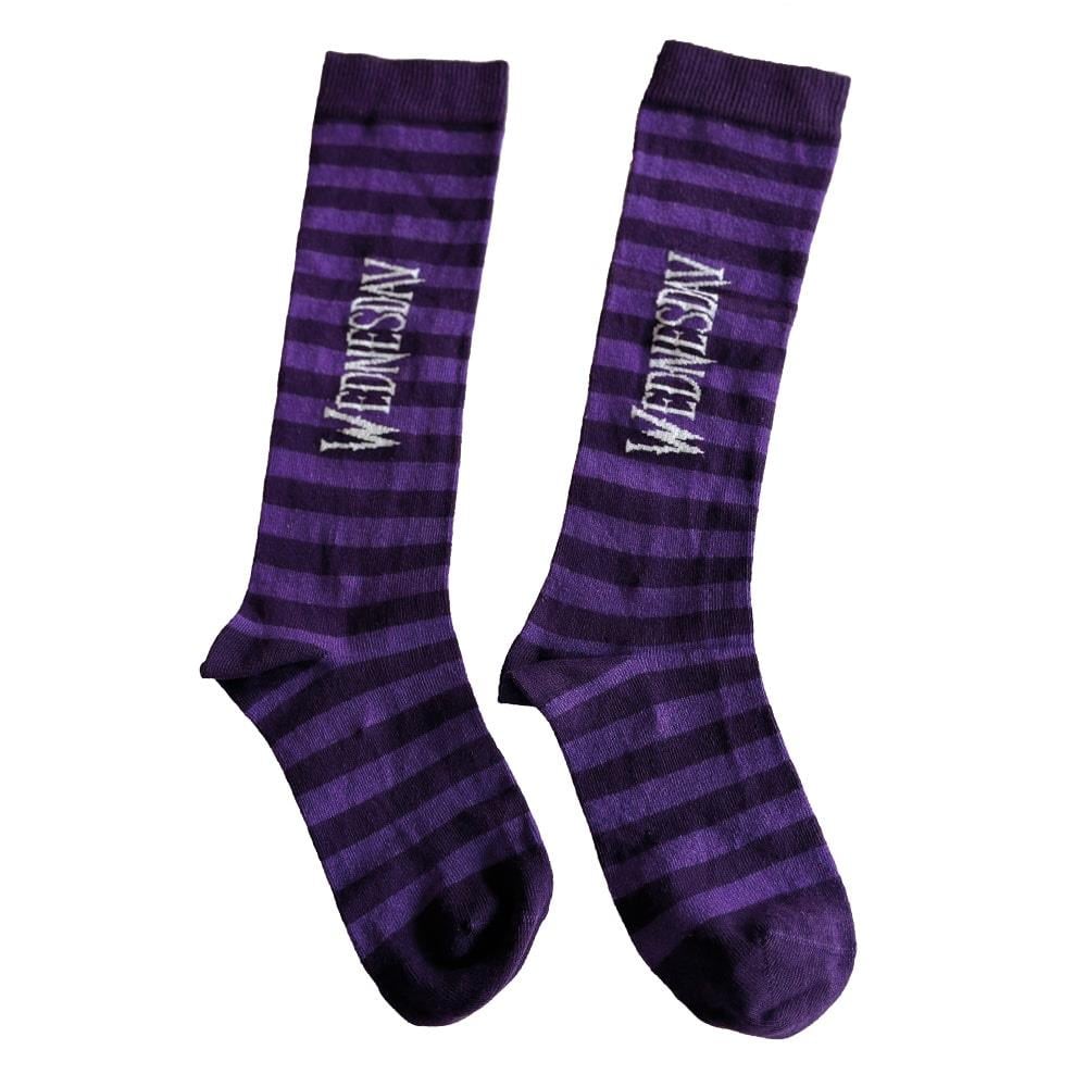 Outcasts Çorap, Lisanslıdır. Çorabın yapısı örgüdür. Polyester içerir. Bedeni standarttır. Boyu ise ‘mid calf’ ölçülerindedir.  Wednesday örme çorapta, Nevermore'un karanlık havasından ilham alınmıştır. Çorap üzerinde 3 beyaz şerit bulunmaktadır. Lisans kartıyla birlikte gönderim sağlanır.
