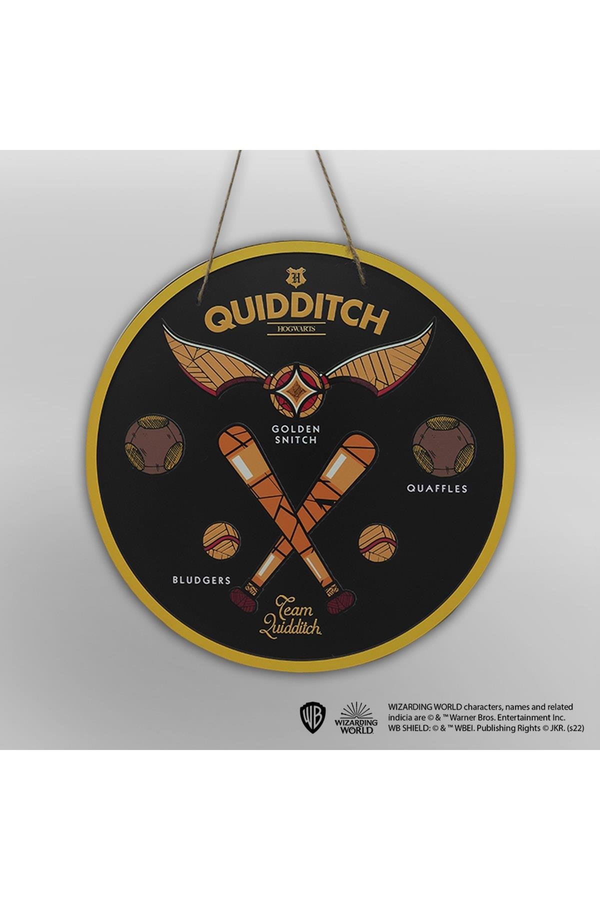 [name] Harry Potter’ın büyülü dünyasında yolunu kaybetmeni istemeyiz! Quidditch 3D Tabelası, sana sihirli evrenin sırlarını keşfederken yol gösterecek; Peki, sen hangi büyülü yolu seçeceksin? Quidditch 3D Tabela Ürün Özellikleri Boyut: 30 cm Çap Materyal: MDF Askı Aparatı: Hasır ip ile birlikte gelmektedir; Ürünümüz orijinal, Warner Bros; lisanslıdır; Quidditch Büyücülerin Oynadığı Spor Dalı Quidditch, Harry Potter kitaplarındaki spor dalıdır; Quidditch, büyücülerin oynadığı bir takım oyunudur; Süpürge üzerinde uçarak oynanır; Amacı Quaffle denilen topu üç çemberin birinden geçirmek ya da Snitch denen kanatlı topu yakalayarak maçı bitirmektir; Bu sporda her takımda yedi oyuncu bulunmaktadır; Oyunda Kullanılan Araçlar ve Oyuncu Pozisyonları Takım Üyeleri Üç Kovalayıcı: Kovalayıcının en önemli görevi Quaffle’ı üç çemberin birinin içinden geçirmektir; Bir Tutucu: Tutucunun (kalecinin) görevi Quaffle’ın çemberlerden geçmesini engellemektir; İki Vurucu: Vurucunun görevi takımını Bludgerlardan korumak ve Bludger’ı rakibe atmaktır; Vurucular Bludger’lara vurmak için ellerinde beyzbol sopasına benzer sopalar taşırlar; Bir Arayıcı: Arayıcının görevi Altın Snitch’i rakibinden önce yakalayıp oyunu bitirmektir; Quidditch De Kullanılan Araçlar Üç çeşit top vardır; Bunlar: Bir adet Quaffle: Quaffle’ı top atıcı çemberden geçirmeye, kaleci ise tutmaya çalışır; Kovalayıcı bu topu çemberden geçirmeyi başarırsa takımına on puan kazandırır; İki adet Bludger: Bludger kendi iradesi olan bir toptur; Amacı elinden geldiği kadar fazla oyuncuyu süpürgesinden düşürmektir; Bir adet Altın Snitch: Bir arayıcı tarafından yakalanınca maçı sonlandıran Snitch, kendisini yakalayan arayıcının takımına yüz elli puan kazandırmaktadır; Snitch’in yakalanamadığı durumlarda maçın sonsuza kadar uzama ihtimali vardır; Bu durumda yedekler oyuna girecektir; Hatta bir seferinde Quidditch maçı tam dört gün sürmüştür; Snitch bulunmadan önce bu top yerine sinicit adı verilen sarı renkli küçük bir kuş kullanılmaktaydı; Maç esnasında bu kuşlar ölebiliyordu, Sihir Bakanlığı bu yüzden Quidditch maçlarında sinicit kullanımını yasakladı; Büyücüler Dünyasının Sevilen Sporu: “Quidditch” Hogwarts’ta dört takım bulunmaktadır; Bu takımlar isimlerini Hogwarts Okulu’nda bulunan dört binadan almıştır; Büyücüler dünyasında Quidditch sevilen bir spordur, dört yılda bir de dünya kupası düzenlenmektedir; Profesyonel Quidditch takımlarından bazıları şunlardır: Holyhead Harpileri, Wington Wanderers, Chudley Cannons, Appleberry Arrows, Turshill Turnadows gibi Chudley Cannons bir zamanlar ligin en iyi takımıydı; Uzun süre şampiyon olamayınca marşlarını değiştirmişlerdi;