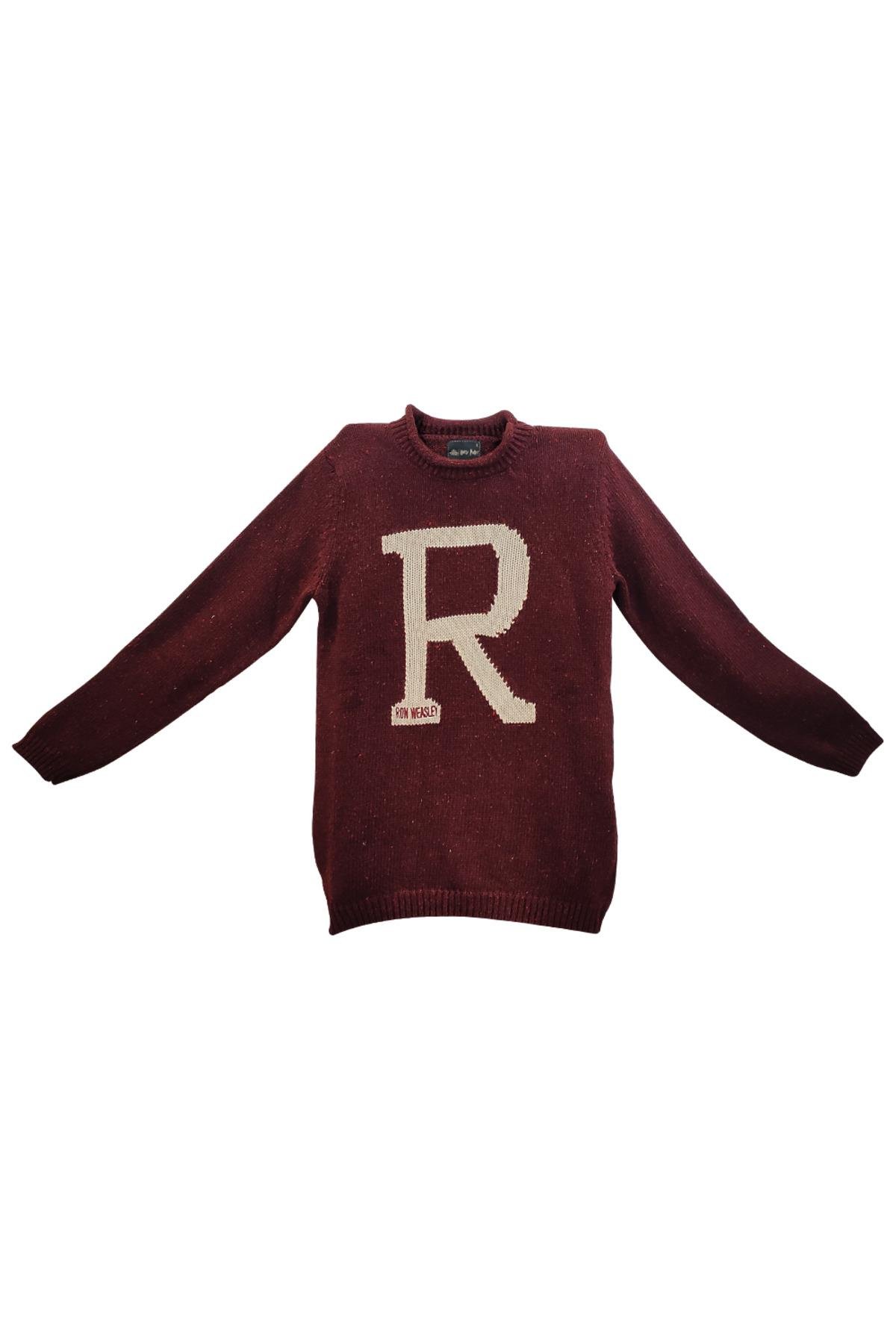 Harry Potter film serisinde yer alan Molly Weasley’ninoğulları Ron, George, Fred ve ayrıca Harry için ördüğü süveterden esinlenerektasarlanan bu kazak, özel ve lisanslı bir üretimdir.; ; Dayanıklıve yumuşak polyester karışımı malzemeden üretilmiştir.; Bu sayede rahatlık vedayanıklılığı bir arada sunar.; ; Bordo renkli malzeme kullanılarak üretilen Ron kazağınön kısmında açık renkli, büyük bir “R” harfi bulunmaktadır.; ; Kazağın boyun kısmında orijinal “Warner Bros.; / WizardingWorld / Harry Potter” imzasını taşıyan dikme lisans kartı yer almaktadır.; ; Ron Weasley Kazak, rahat bir kesime sahiptir.; ; Kol ve bel kısmında yer alan örme lastik sayesinde şık bir görünüm sağlar.; ; Beden tablosu görsellerde yer almaktadır.; ; Koleksiyon ürünüdür.; ; Elde Yıkanabilir ; Ortalama Ağırlık 0,9Kg ; Orijinal Lisanslı Warner Bros.; Ürünüdür! ;